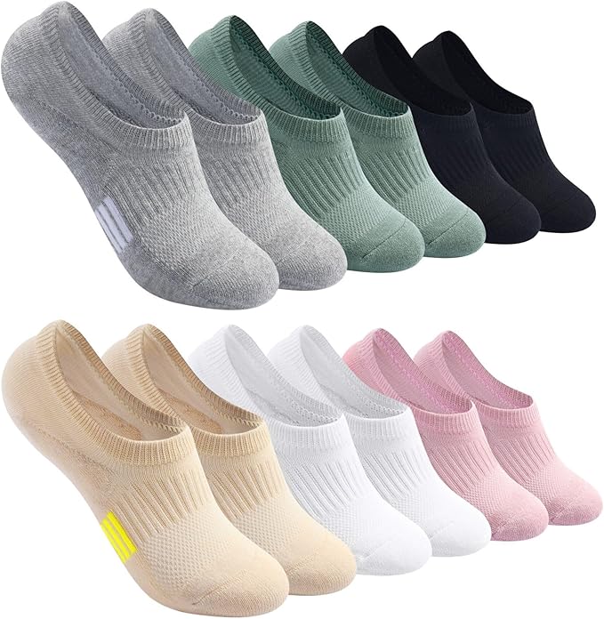 Non Slip and Arch Support: These womens no show socks are equipped with elastic cuff and grippers on the heel to avoid slipping down. As running socks, they have slight compression by arch support design to be snug on your feet and reduce fatigue
